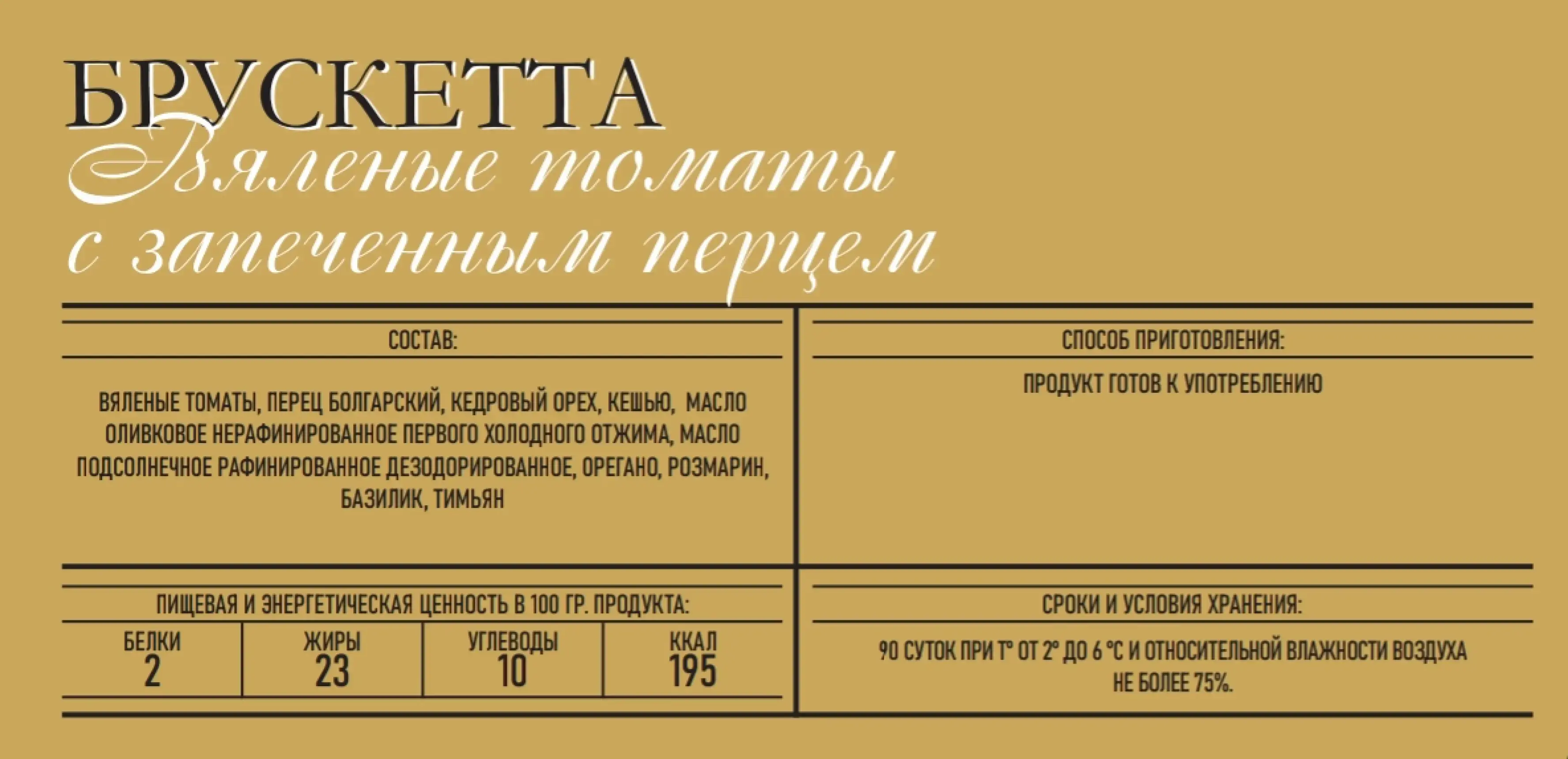 Откройте для себя изысканный вкус итальянской кухни с брускеттой от нашего бренда! В каждом кусочке – насыщенный аромат вяленых томатов и нежность запеченного перца. Подарите себе момент гастрономического наслаждения без лишних хлопот: просто откройте упаковку и почувствуйте тепло Средиземноморья у вас дома. Приятное послевкусие гарантировано!