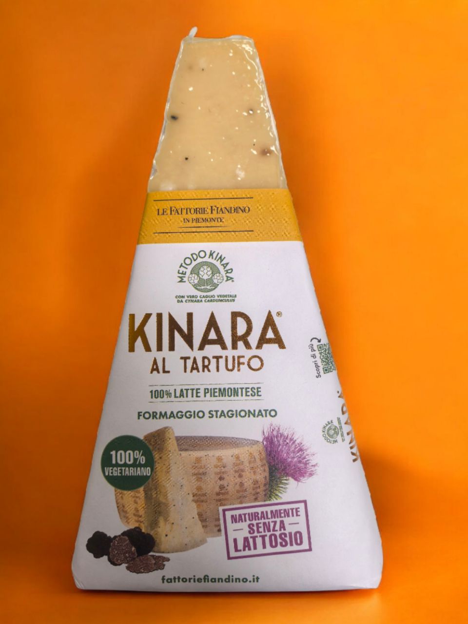 Первый и единственный в мире выдержанный сыр с настоящим растительным сычужным ферментом из цветков Cynara Cardunculus (чертополох) с трюфелями. Он не содержит лактозы и, благодаря растительному сычужному ферменту, подходит вегетарианцам. После многих лет исследований сыровары из семьи Фиандино нашли правильный баланс между вкусом пьемонтского молока и кремом из летних трюфелей, входящий в состав Кинары.